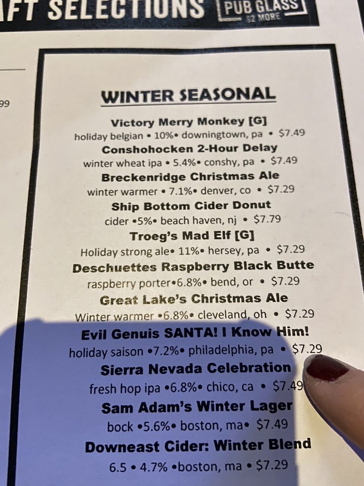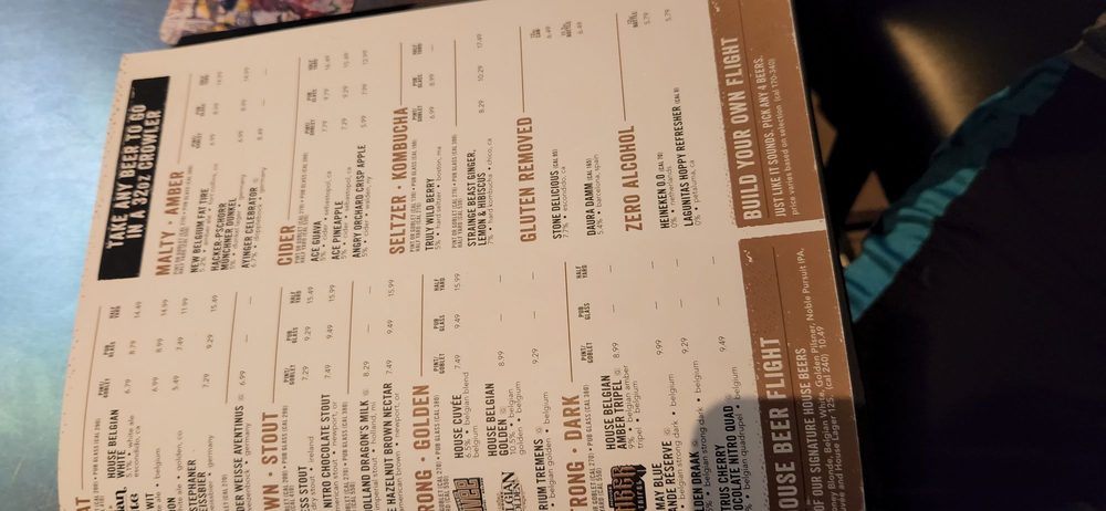 Available in pint or goblet (cal 270) pub glass (cal 390) half yard (cal 550) abv varies